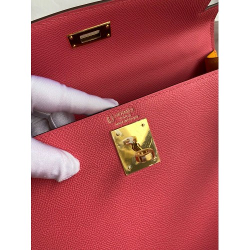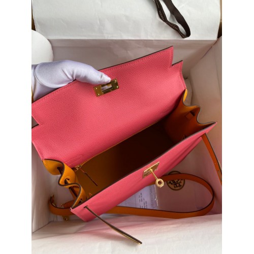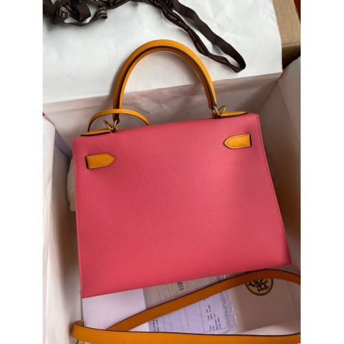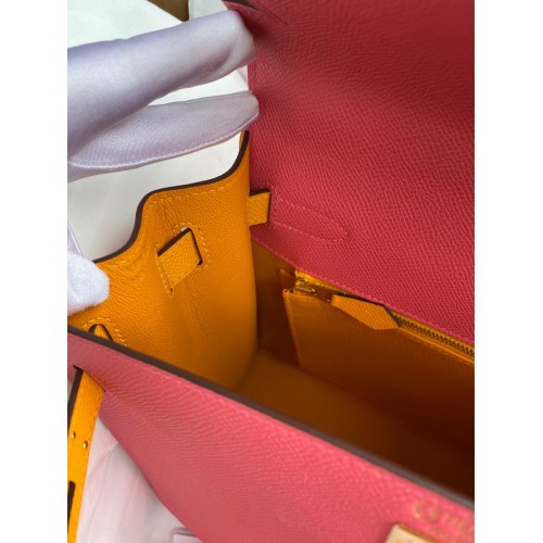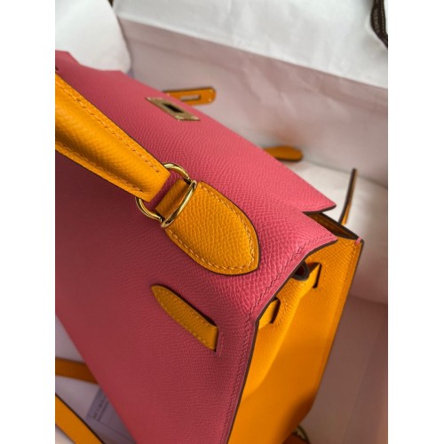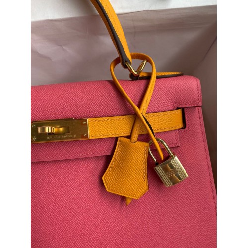 Replica Handbag Store Kelly Sellier 28 Bicolor Bag in Rose Lipstick and Yellow Epsom Calfskin