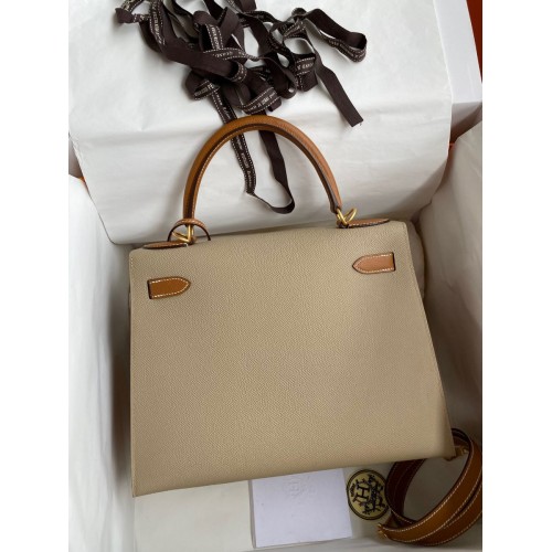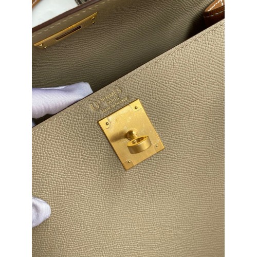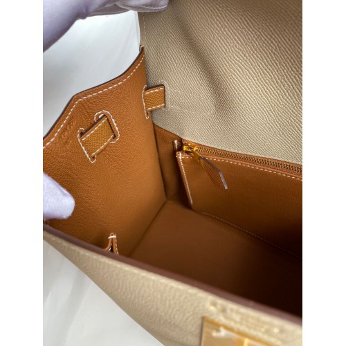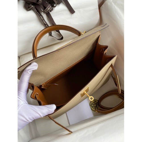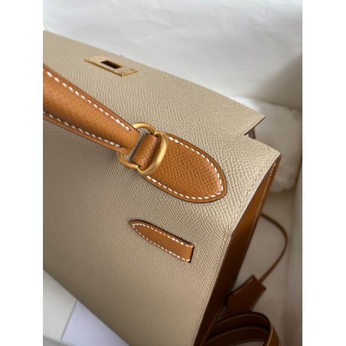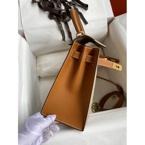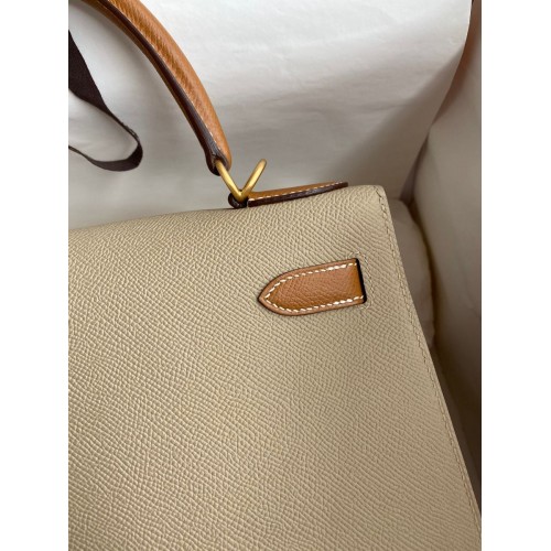 Replica Handbag Store Kelly Sellier 28 Bicolor Bag in Trench and Gold Epsom Calfskin