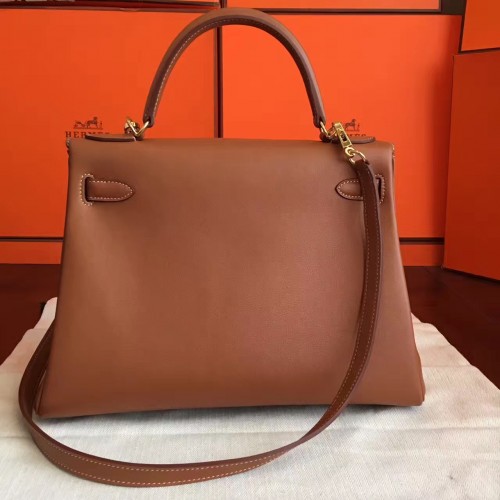 Replica Handbag Store Brown Swift Kelly Retourne 32cm Handmade Bag