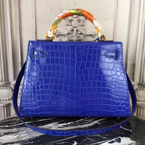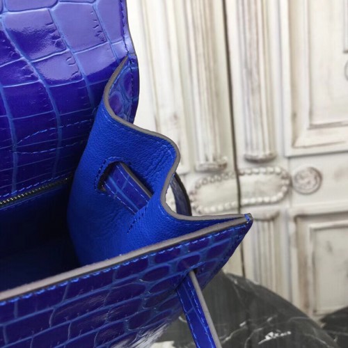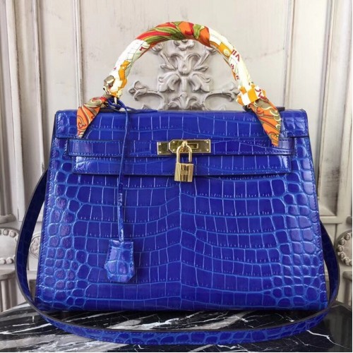 Replica Handbag Store Kelly 32cm Bag In Blue Electric Crocodile Leather