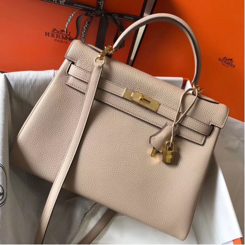Replica Handbag Store Kelly 32cm Bag In Taupe Grey Clemence Leather GHW