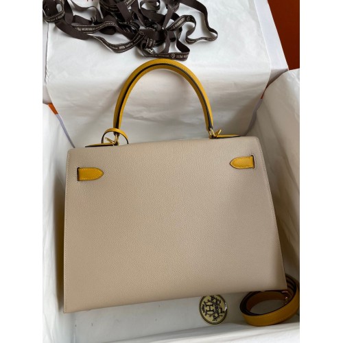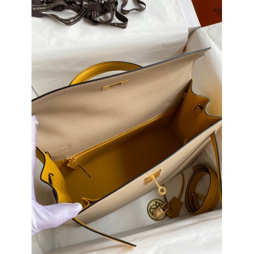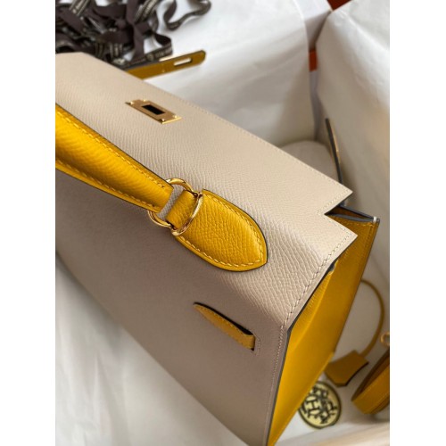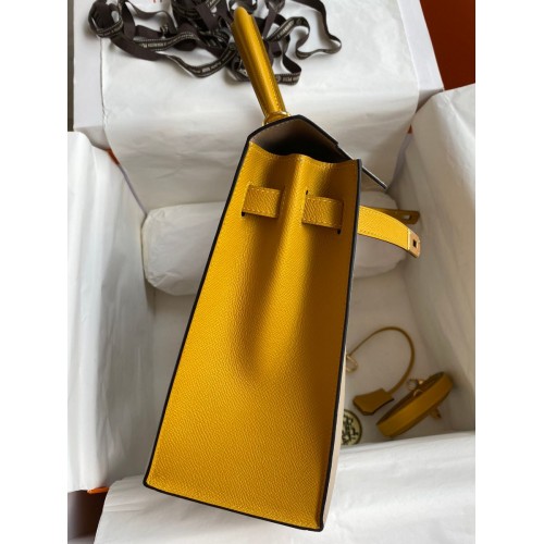 Replica Handbag Store Kelly Sellier 32 Bicolor Bag in Trench and Yellow Epsom Calfskin