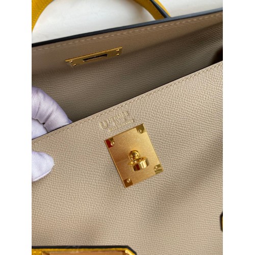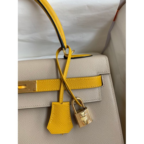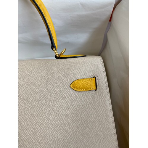 Replica Handbag Store Kelly Sellier 28 Bicolor Bag in Trench and Yellow Epsom Calfskin