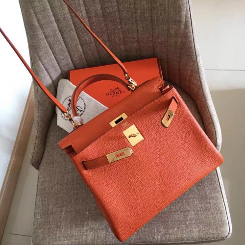 Replica Handbag Store Orange Clemence Kelly Retourne 32cm Handmade Bag
