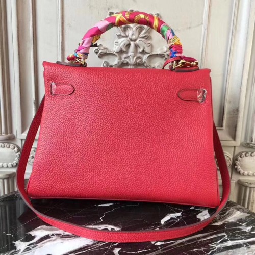 Replica Handbag Store Rose Red Clemence Kelly 32cm Retourne Bag