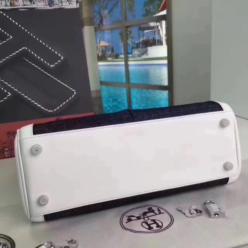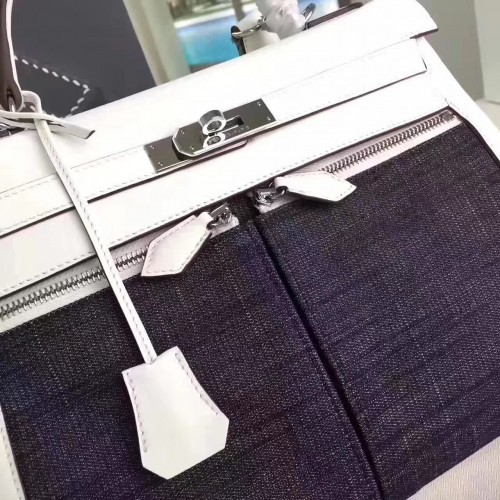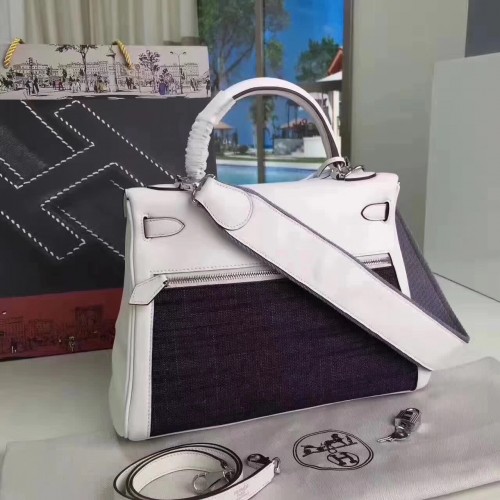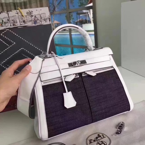 Replica Handbag Store White Kelly Lakis 32cm Toile and Swift Bag