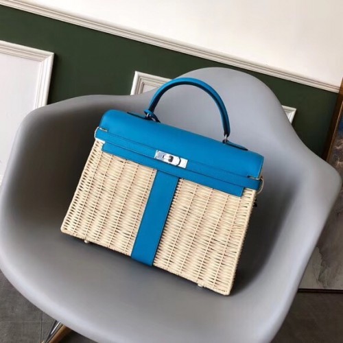 Replica Handbag Store White Picnic Kelly 35cm Wicker Bag