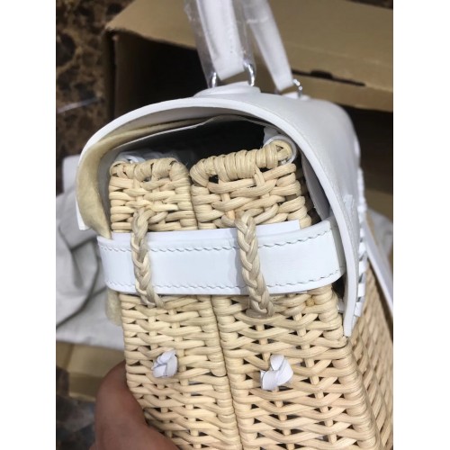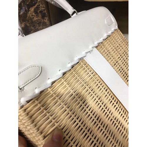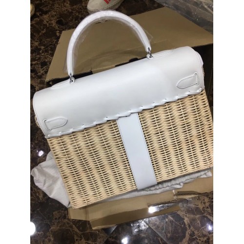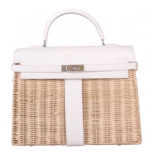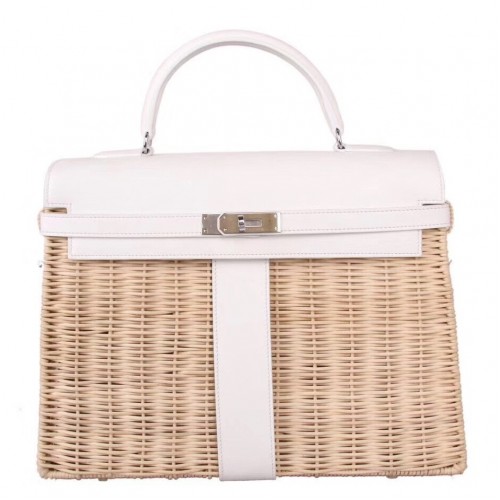 Replica Handbag Store White Picnic Kelly 35cm Wicker Bag