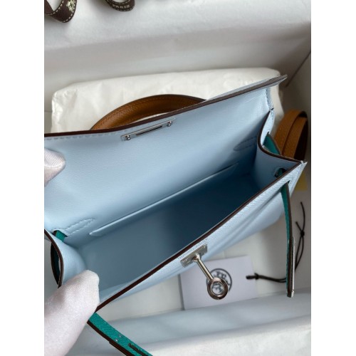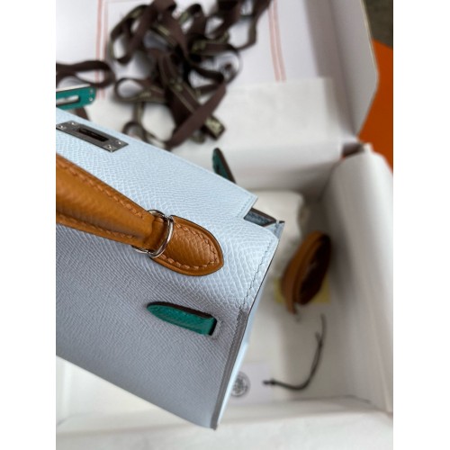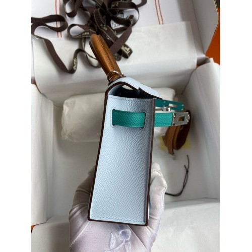 Replica Handbag Store HSS Kelly Mini II Sellier Tri-color Bag in Blue/Green/Sesame Epsom Calfskin