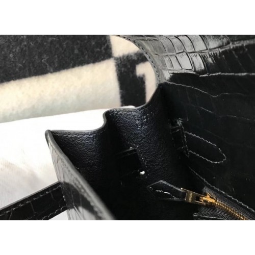 Replica Handbag Store Kelly 28cm Bag In Black Embossed Crocodile GHW