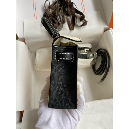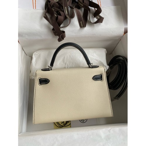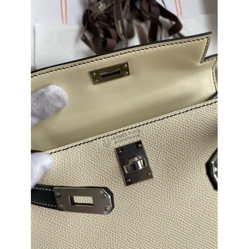 Tags: Replica Handbag Store Kelly Mini II Sellier Bicolor Handmade Bag in Nata and Black Epsom Calfskin, replica Kelly 20cm