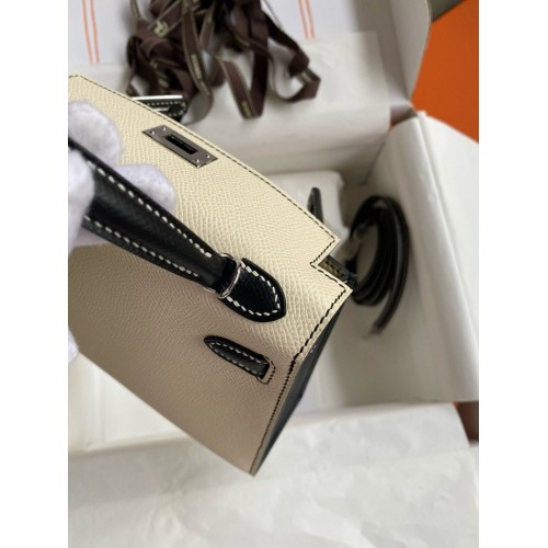 Replica Handbag Store Kelly Mini II Sellier Bicolor Handmade Bag in Taupe and Craie Epsom Calfskin
