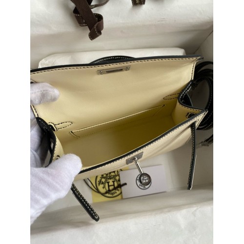 Replica Handbag Store Kelly Mini II Sellier Bicolor Handmade Bag in Nata and Black Epsom Calfskin