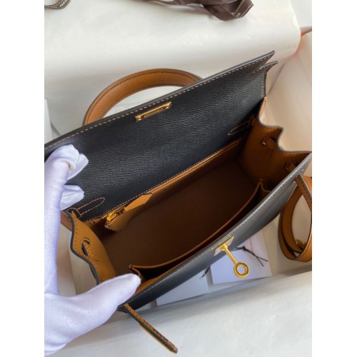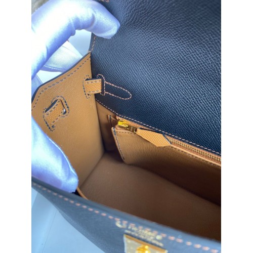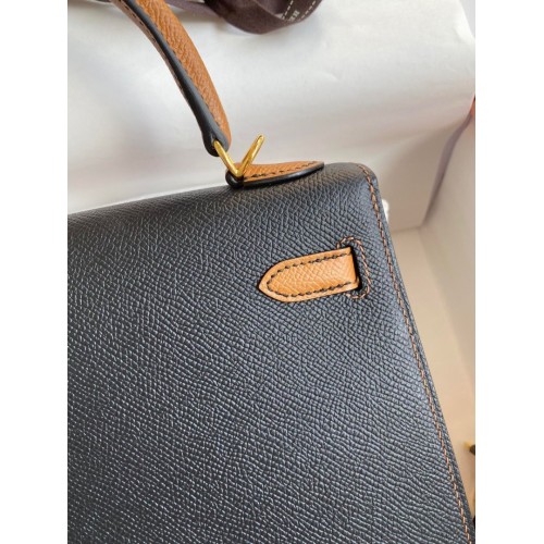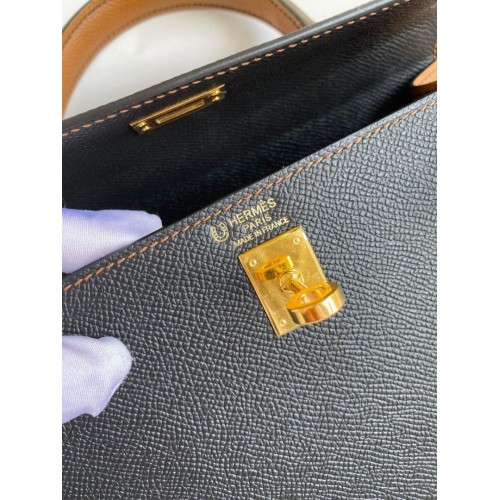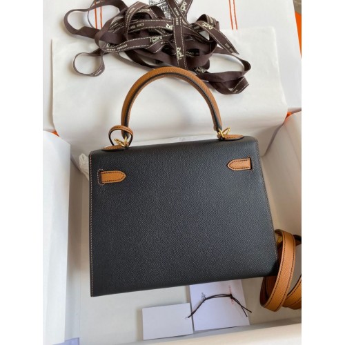 Tags: Replica Handbag Store Kelly Sellier 25 Bicolor Bag in Black and Gold Epsom Calfskin, Kelly 25cm