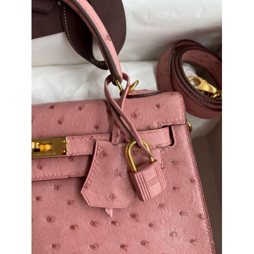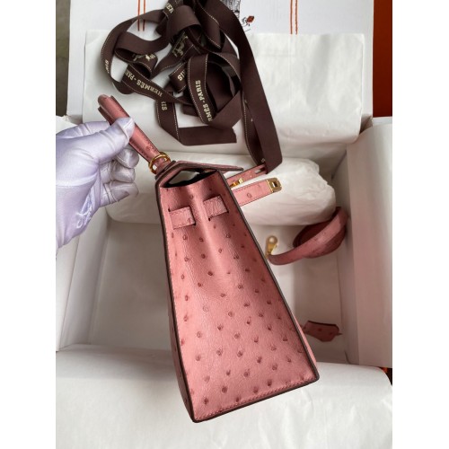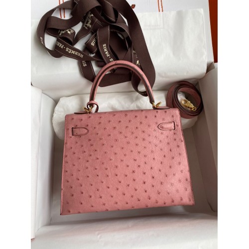 Replica Handbag Store Kelly 25cm Handmade Bag In Terre Cutie Ostrich Skin