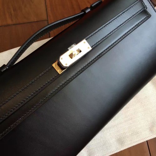 Replica Handbag Store Black Swift Kelly Cut Clutch Handmade Bag