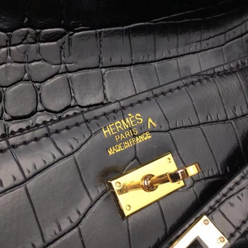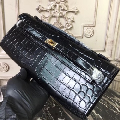 Replica Handbag Store Black Crocodile Kelly Cut Clutch Bag