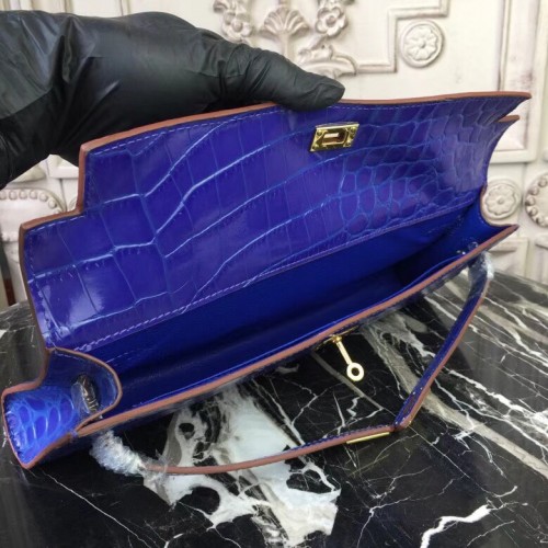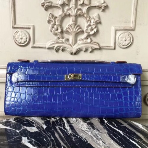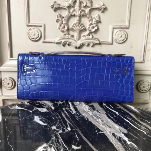 Replica Handbag Store Blue Electric Crocodile Kelly Cut Clutch Bag