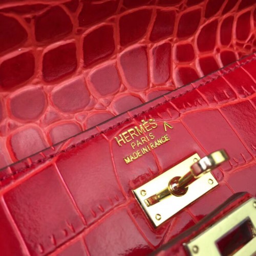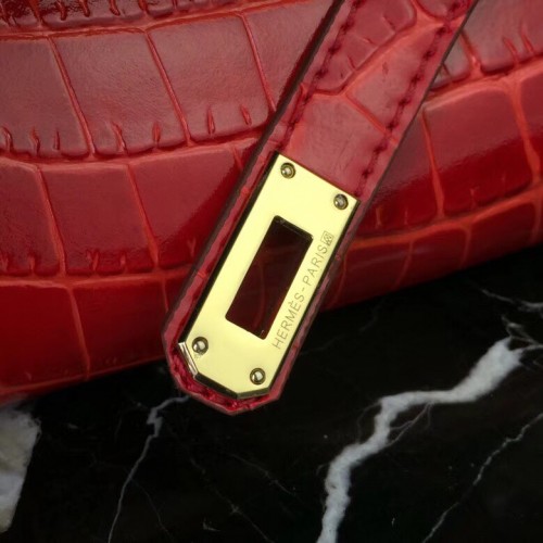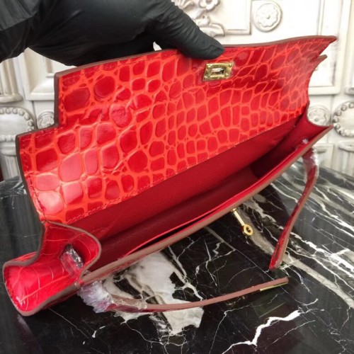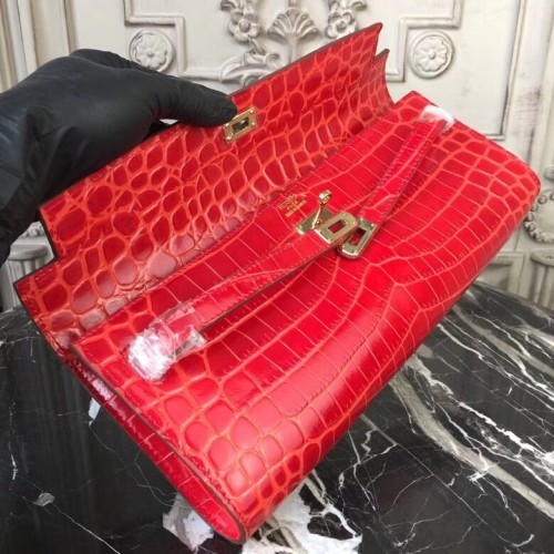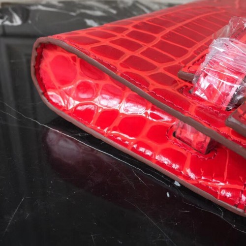 Replica Handbag Store Rose Red Crocodile Kelly Cut Clutch Bag