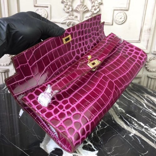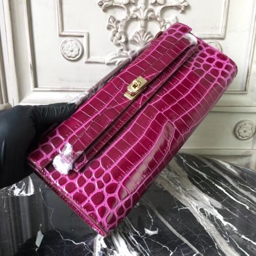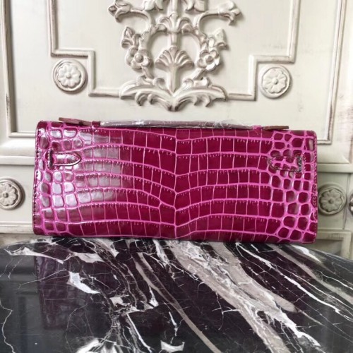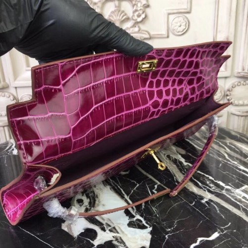 Replica Handbag Store Fuchsia Crocodile Kelly Cut Clutch Bag