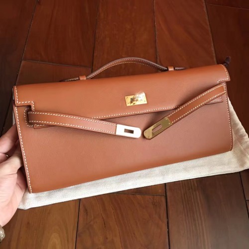 Replica Handbag Store Gold Swift Kelly Cut Clutch Handmade Bag