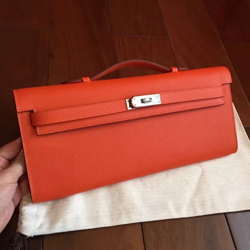 Replica Handbag Store Orange Epsom Kelly Cut Clutch Handmade Bag
