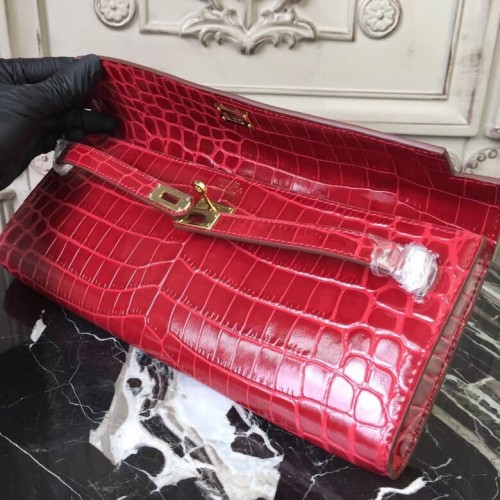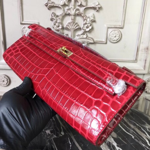 Replica Handbag Store Red Crocodile Kelly Cut Clutch Bag