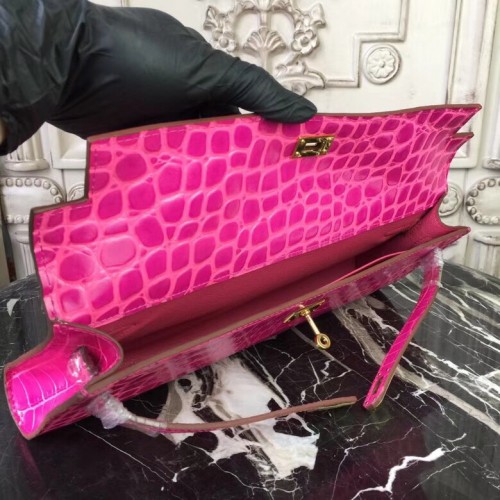 Replica Handbag Store Pink Crocodile Kelly Cut Clutch Bag