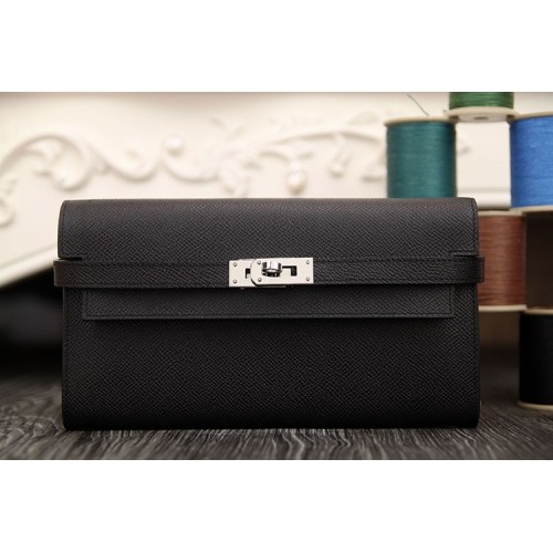 Replica Handbag Store Kelly Longue Wallet In Black Epsom Leather