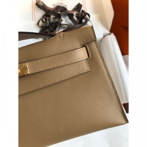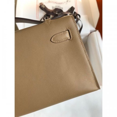 Replica Handbag Store Kelly Pochette Handmade Bag In Taupe Swift Calfskin