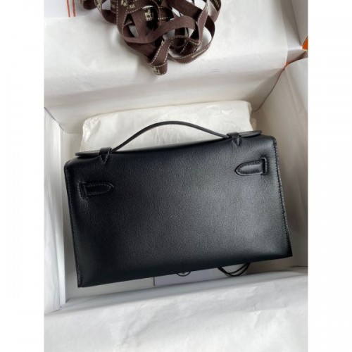 Tags: Replica Handbag Store Kelly Pochette Handmade Bag In Black Swift Calfskin, Kelly Pochette