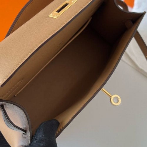 Replica Handbag Store Kelly Pochette Handmade Bag In Chai Swift Calfskin