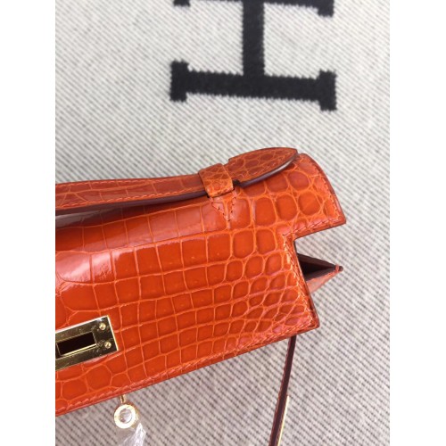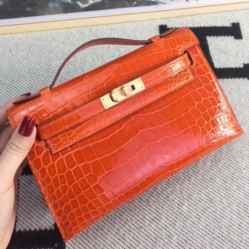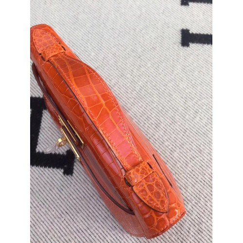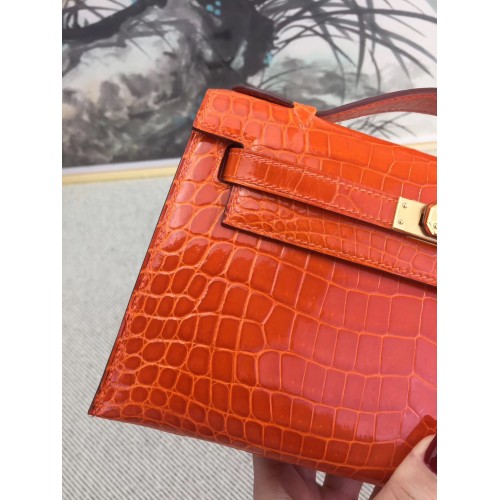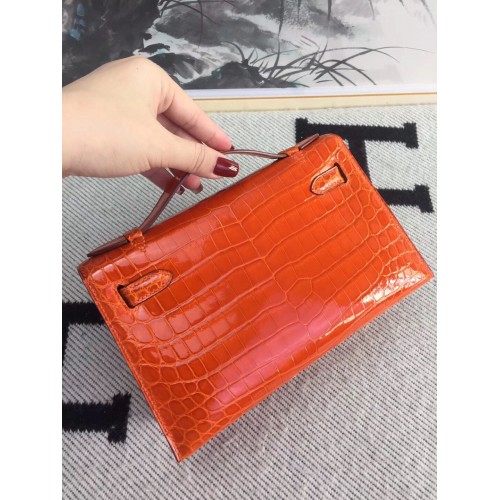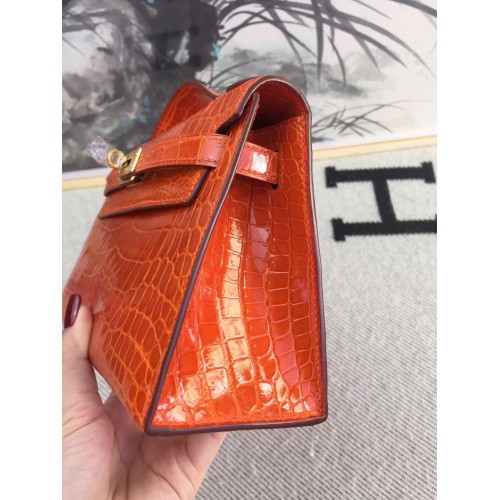 Replica Handbag Store Orange Kelly Pochette Shiny Niloticus Crocodile Bag