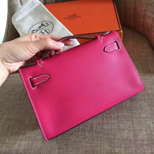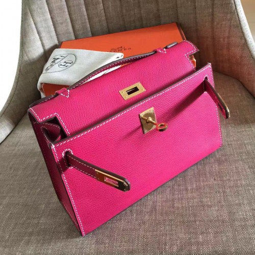 Replica Handbag Store Rose Red Epsom Kelly Pochette Handmade Bag