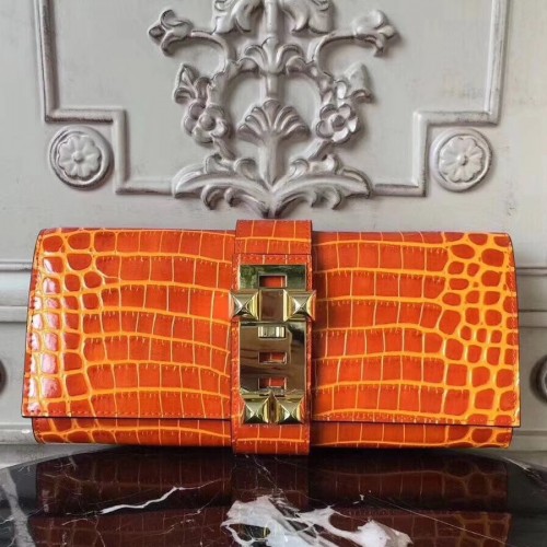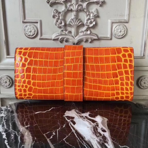 Replica Handbag Store Medor Clutch Bag In Orange Crocodile Leather