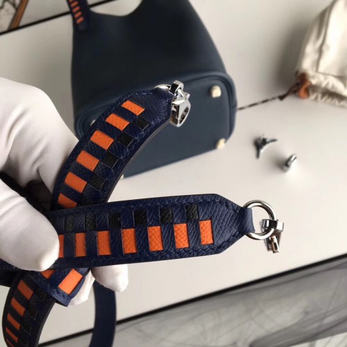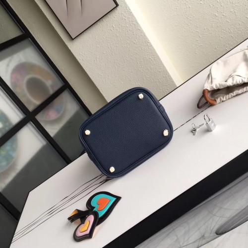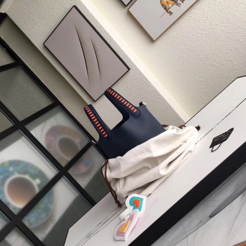Replica Handbag Store Navy Blue Picotin Lock 18cm Bag With Braided Handles