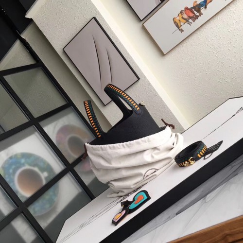 Replica Handbag Store Black Picotin Lock 22cm Braided Handles Bag