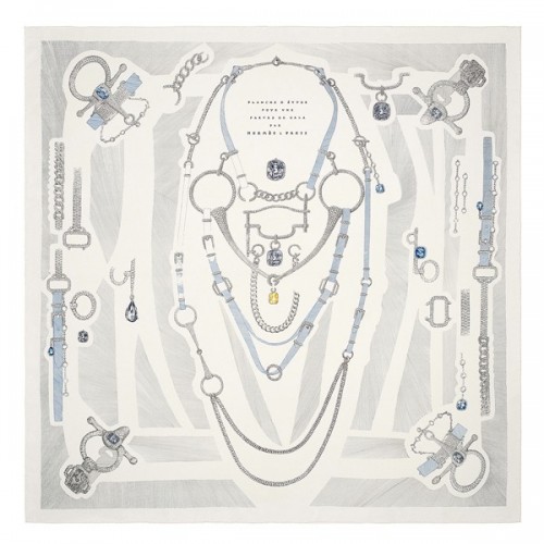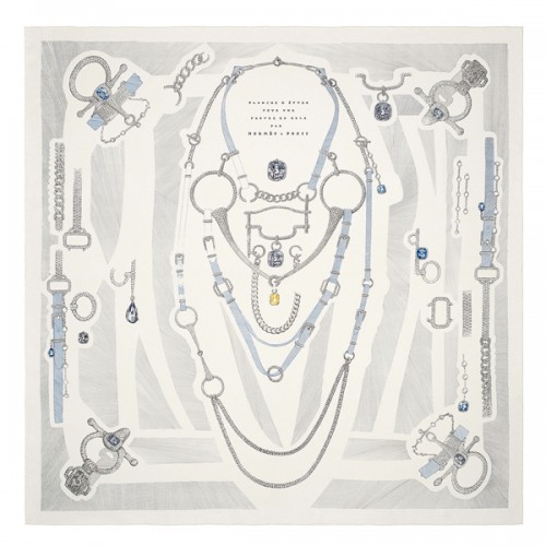 This carré depicts three pieces from a recent fine jewellery collectsion by Pierre Hardy for Hermès. ..