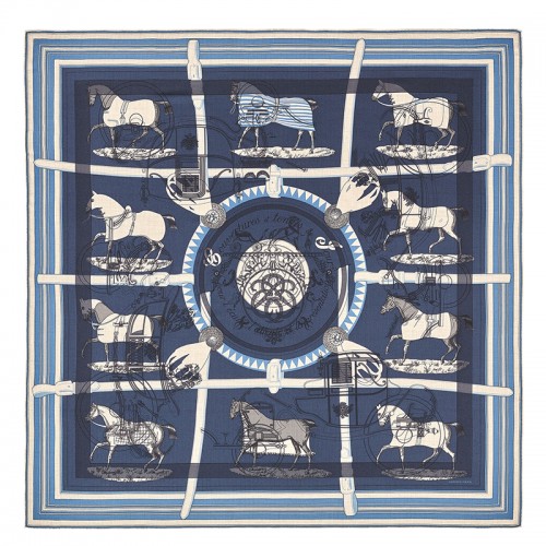 Replica Handbag Store Blue H Imprimeur Fou Couvertures d'Ex-Libris Shawl 140cm