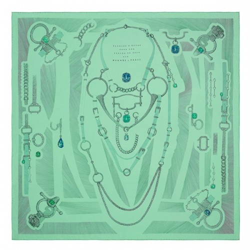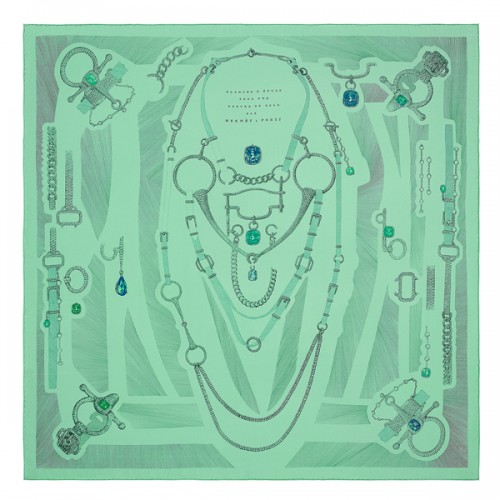 This carré depicts three pieces from a recent fine jewellery collectsion by Pierre Hardy for Hermès. ..