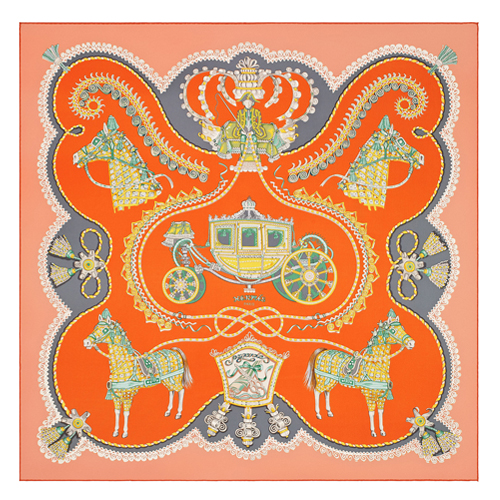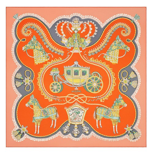Replica Handbag Store Orange Paperoles Silk Twill Scarf
