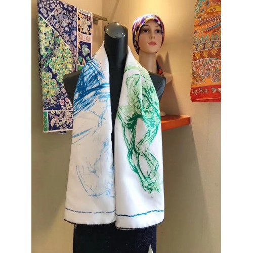 Replica Handbag Store Cobalt Ex-Libris Coloriage Silk Shawl