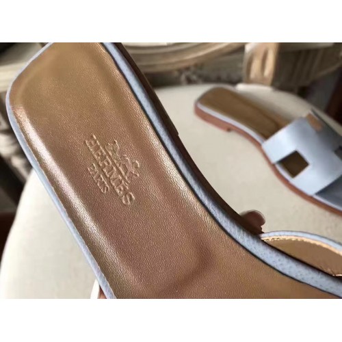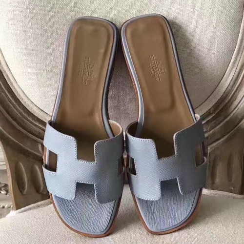 Replica Handbag Store Oran Sandals In Blue Lin Epsom Leather