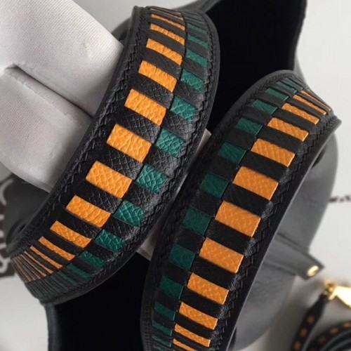 Replica Handbag Store Black Tressage Cuir 25 MM Bag Strap