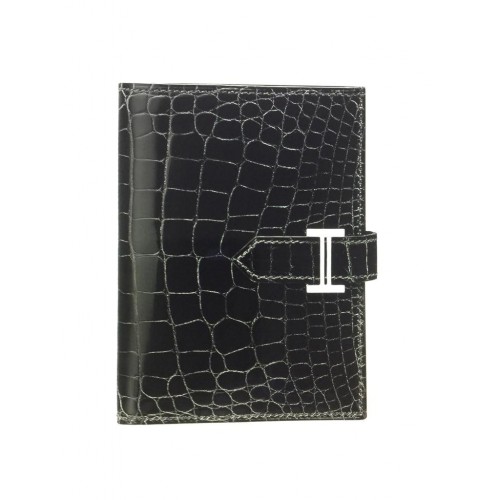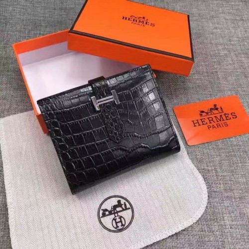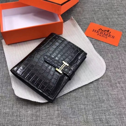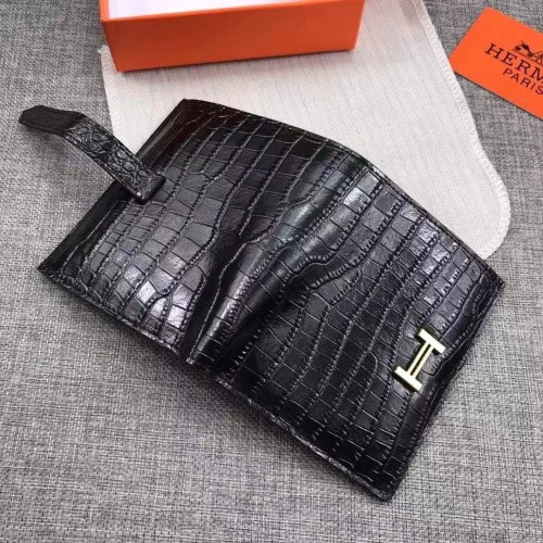 Tags: Replica Handbag Store classic crocodile pattern H buckle two-fold short women wallet black, ,