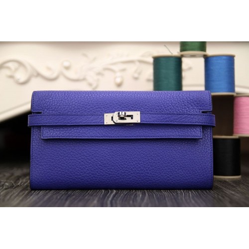 Replica Handbag Store Kelly Longue Wallet In Electric Blue Clemence Leather
