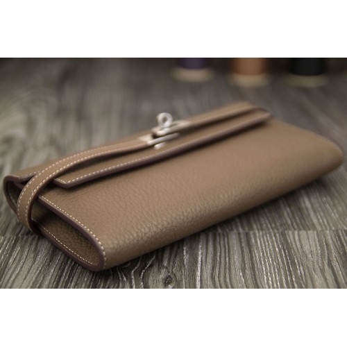 Replica Handbag Store Kelly Longue Wallet In Etoupe Clemence Leather