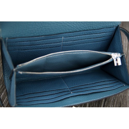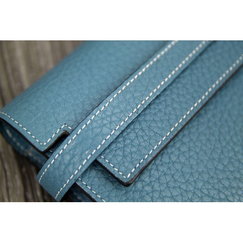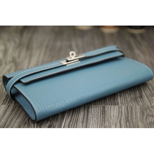 Replica Handbag Store Kelly Longue Wallet In Jean Blue Clemence Leather