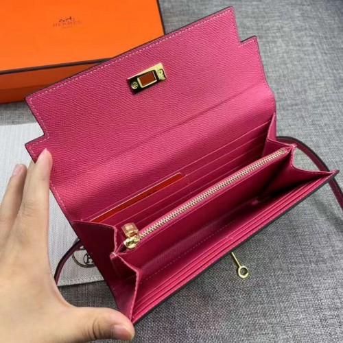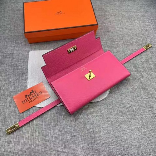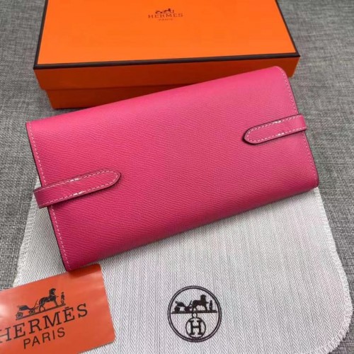 Replica Handbag Store Kelly Longue Wallet In rose Clemence Leather